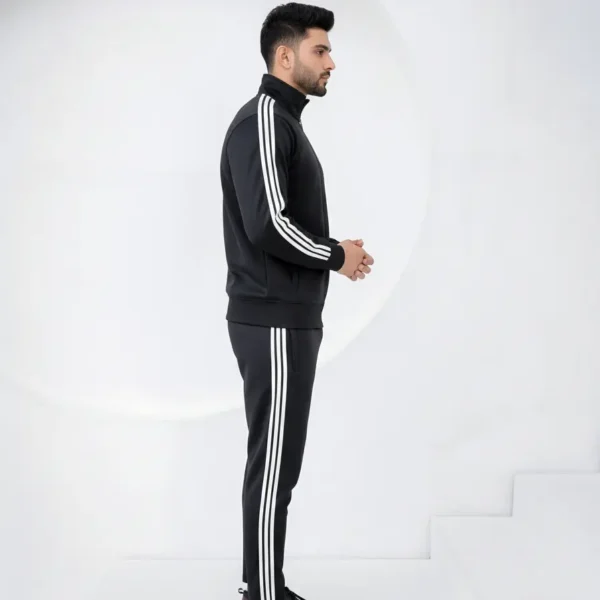 Men’s Premium Athletic Tracksuit – Beige Jacket & Black Track Pants | Double Stripe Sportswear Set