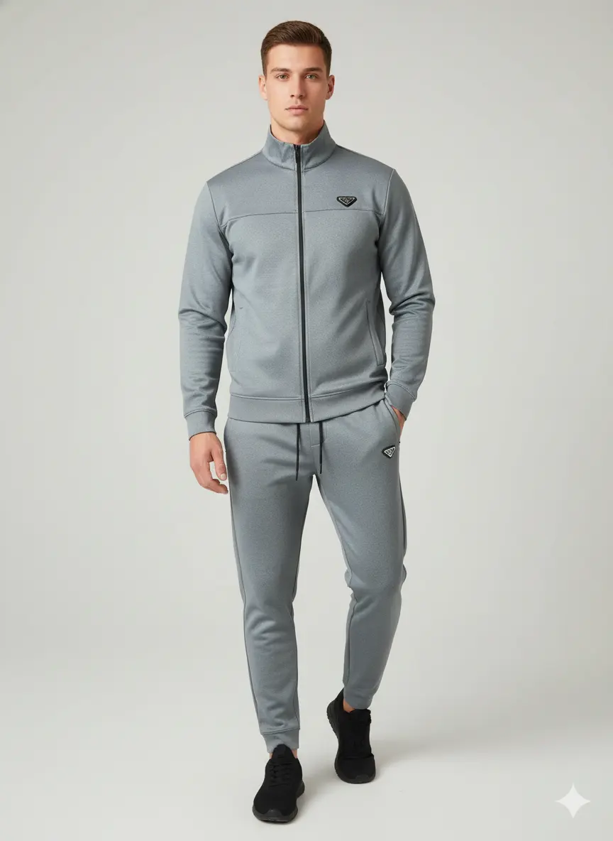 AliVertex Men’s Premium Athletic Tracksuit – Full Zip Jacket & Slim-Fit Joggers (Grey)