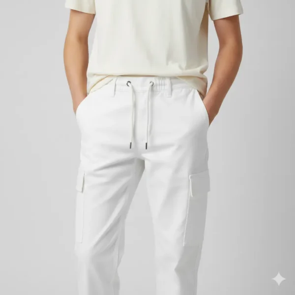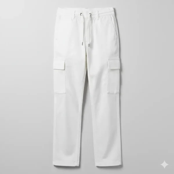 Men’s White Plain Cargo Trouser – Premium Cotton