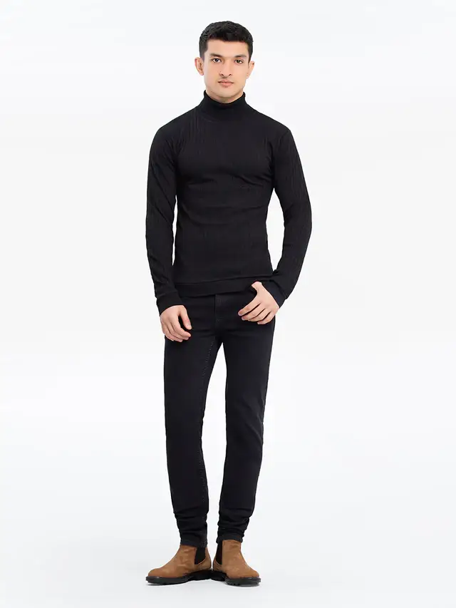 Ali Vertex Men’s Black High Neck Ribbed Turtleneck – Cotton Polyester Blend