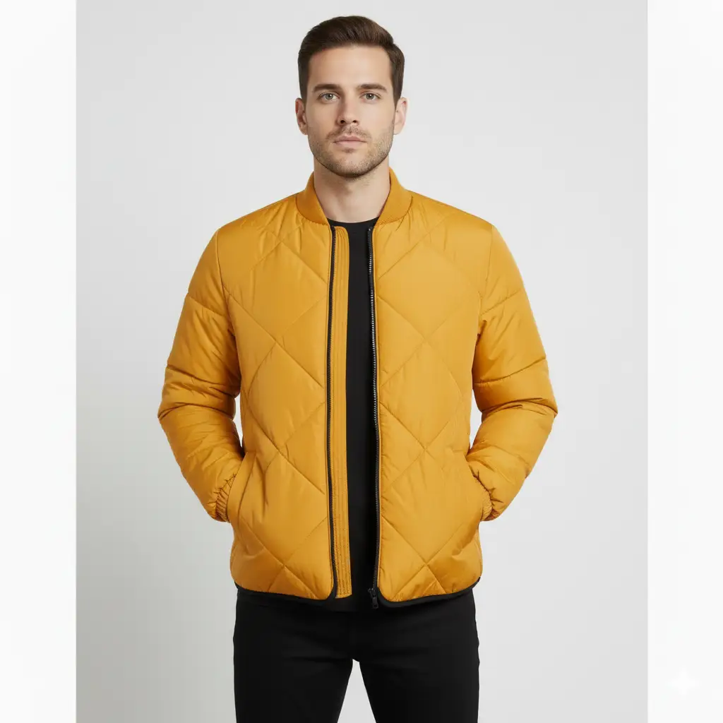 Men’s Mustard Quilted Puffer Jacket Lightweight Winter Wear with Front Zip
