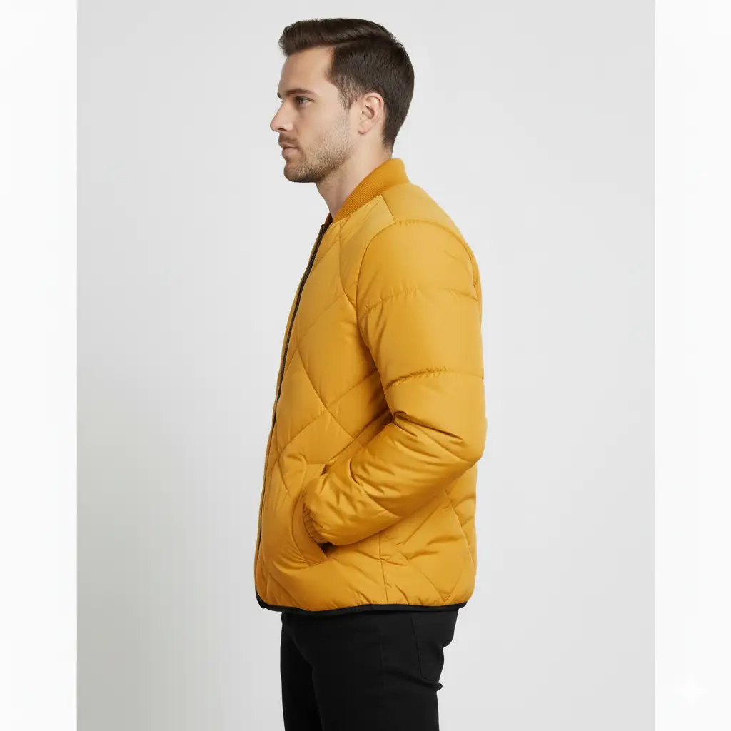Upgrade your winter wardrobe with this Men’s Mustard Quilted Puffer Jacket, designed for modern style and everyday comfort. Crafted with premium lightweight insulation, this jacket provides excellent warmth without feeling bulky. The diamond quilted pattern enhances durability while adding a sleek, fashionable look.
